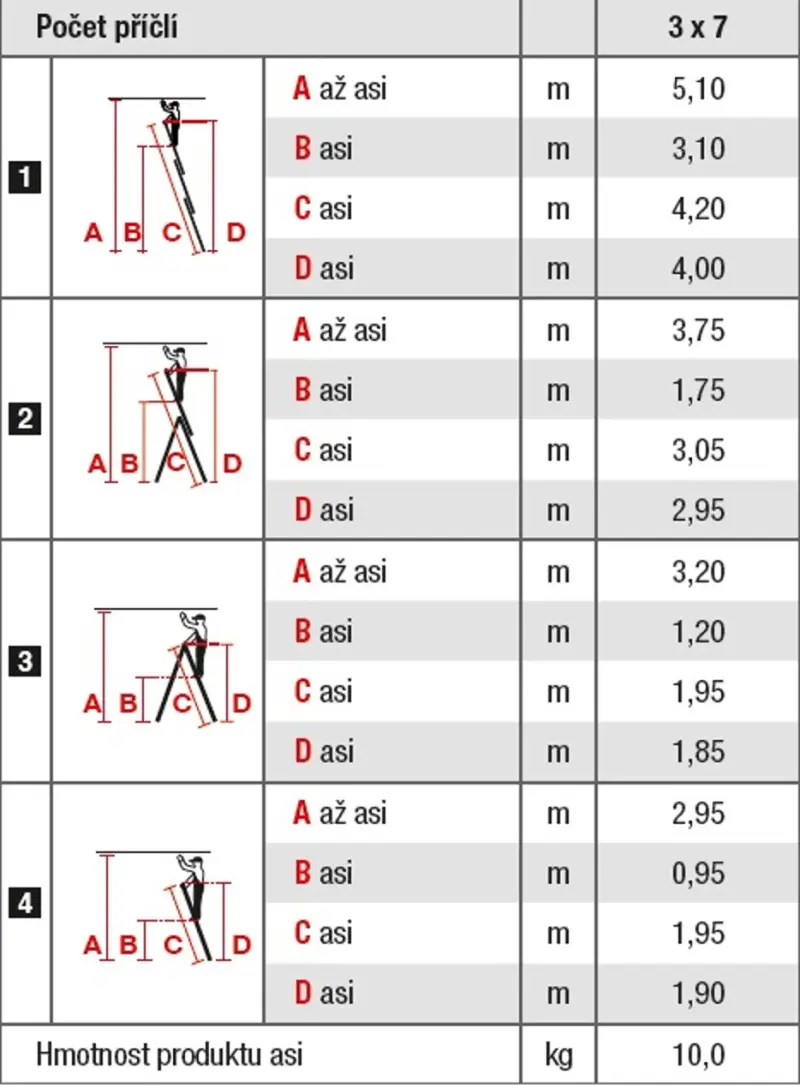 3x7; 195/310/420 cm; max. pracovní výška 5,1 m; žebřík opěrný/výsuvný/štafle; certifikováno pro domácí i profesionální použití; nosnost 150 kg