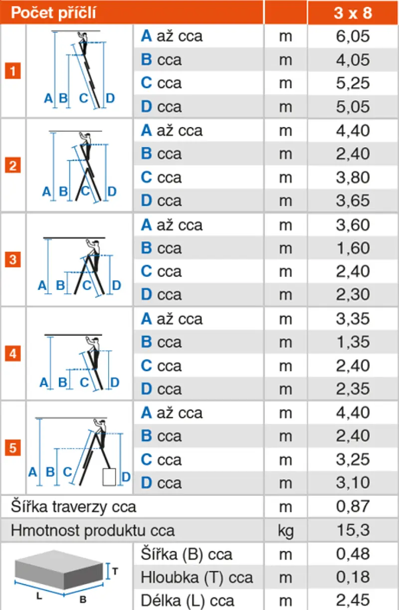 3x8; 240/380/525 cm; 15,3 kg